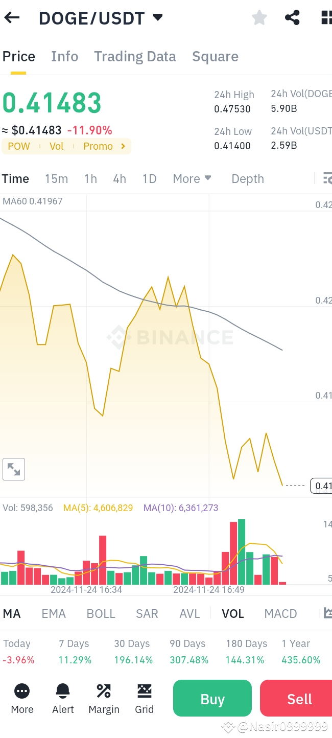 Price: The price is at $0.41483, showing a significant intraday drop of -11.90%.