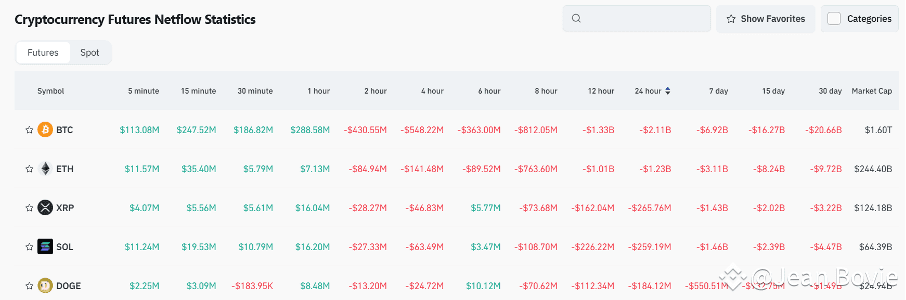 5.In the last 24 hours, $BTC, $ETH, $XRP, $SOL, and $DOGE led in net outflows in futures trading, signaling potential trading opportunities.