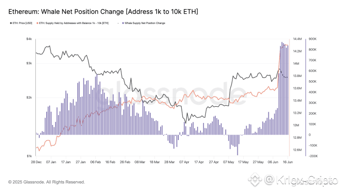 Durante casi una semana la acumulacion diaria de las ballenas de Ethereum supera los 800K ETH. Fuente: Glassnode.