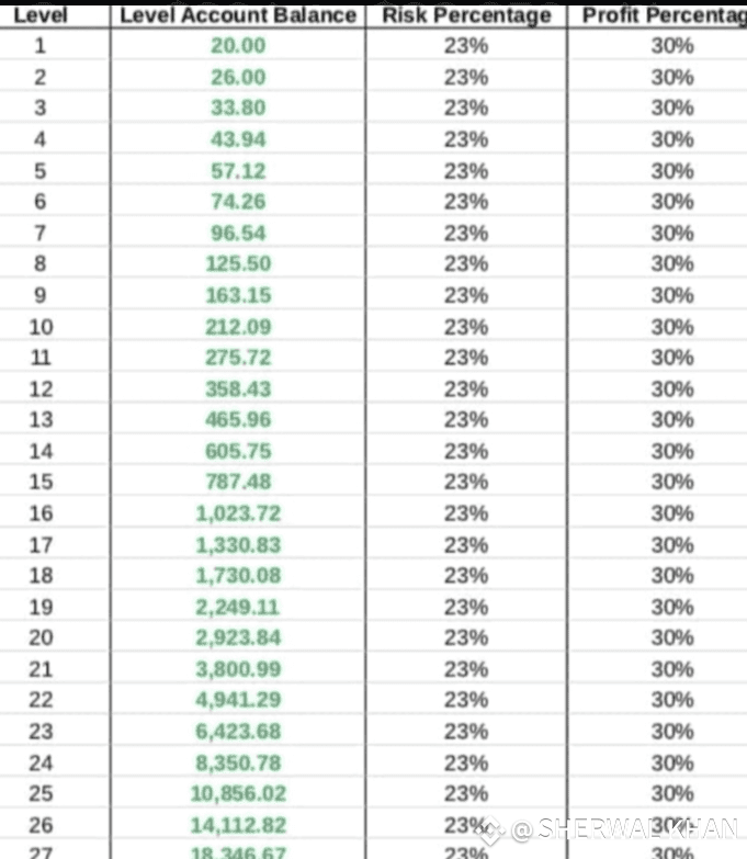 ...continue this process up to Level 28, and your account could reach $23,850.67.