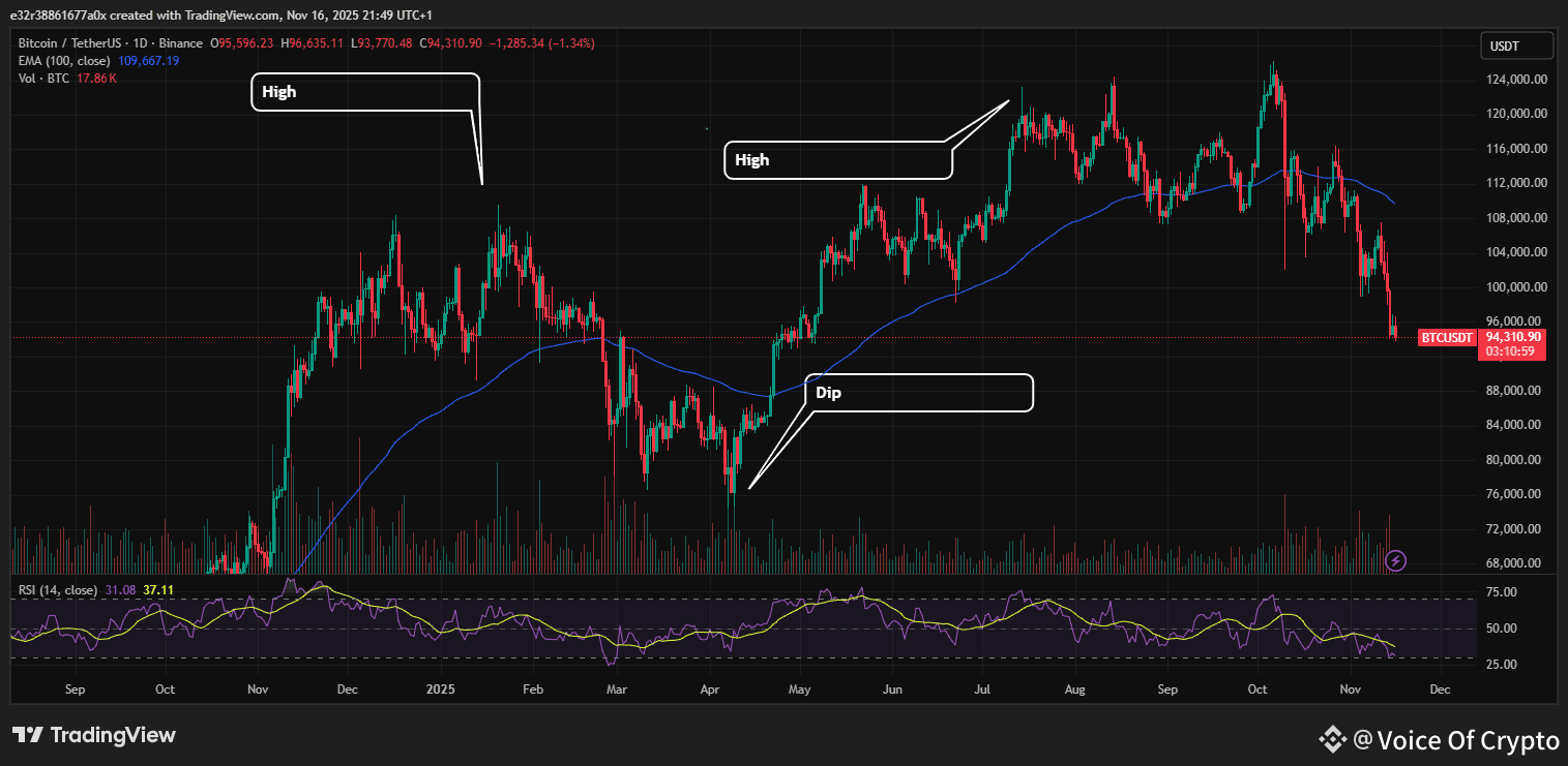 A market pullback shows up after a clear rise and tends to last for a short period. The same happened after Bitcoin hit the $125,000 mark and crashed below $100,000.