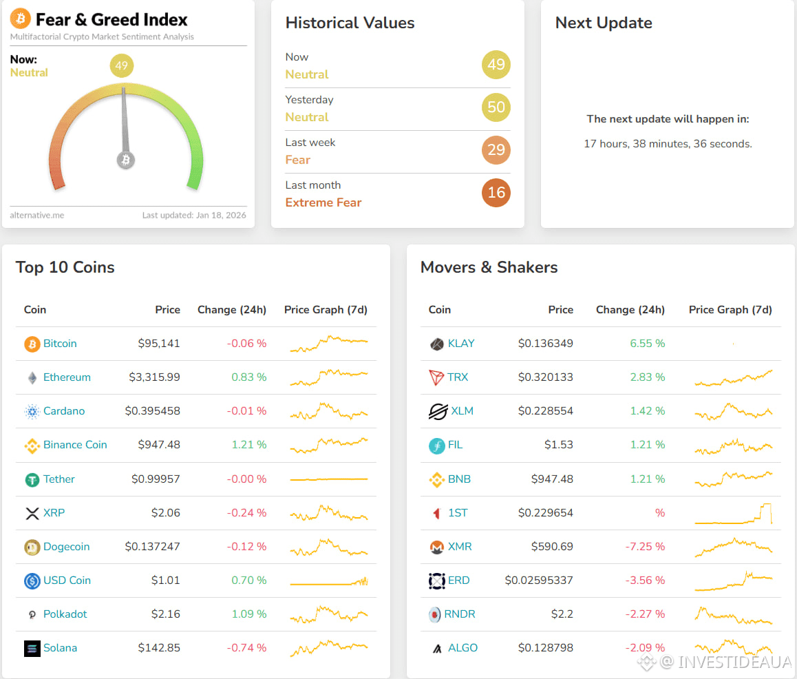 Индекс страха и жадности: 49 (Neutral)