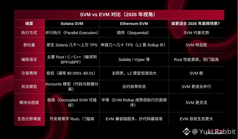 追求极致性能、低延迟、低成本、支持海量微交易 → SVM 有结构优势,尤其在 2026 年最热的叙事里