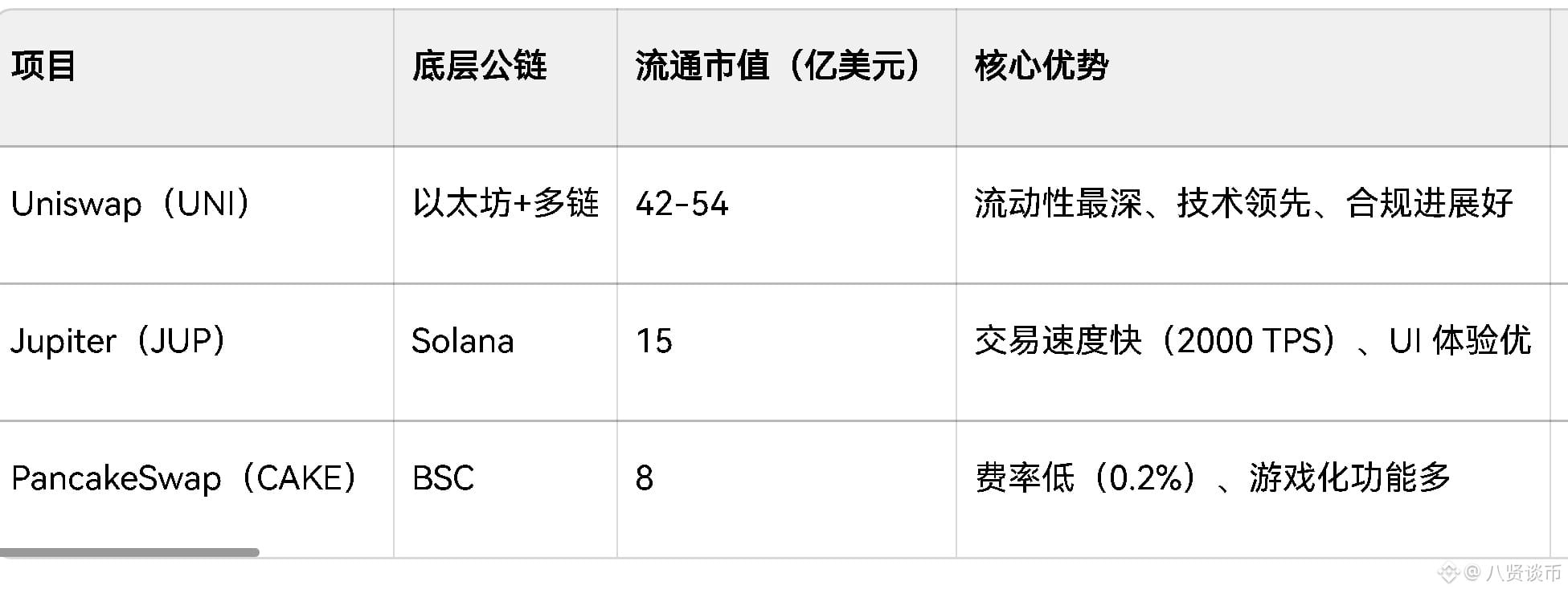 - 多链竞争压力:Solana 生态 Jupiter(凭借极速交易)、BSC 生态 PancakeSwap(低费率+游戏化)分流部分用户,多链部署导致流动性分散。