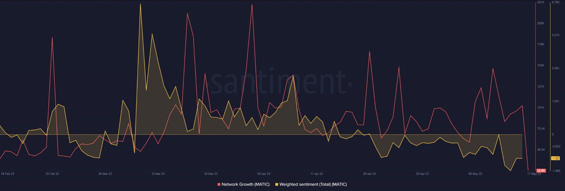 The price drop has weakened investor confidence in MATIC, as the sentiment weighted continues to trend in the negative zone. As a result, user adoption has taken a hit, as indicated by the steady decline in the number of new addresses.