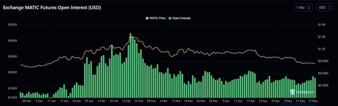 In the futures market, the open interest (OI) of MATIC has risen by 3.24% in the past 24 hours. According to Coinglass data, the metric reached $182.82 million.