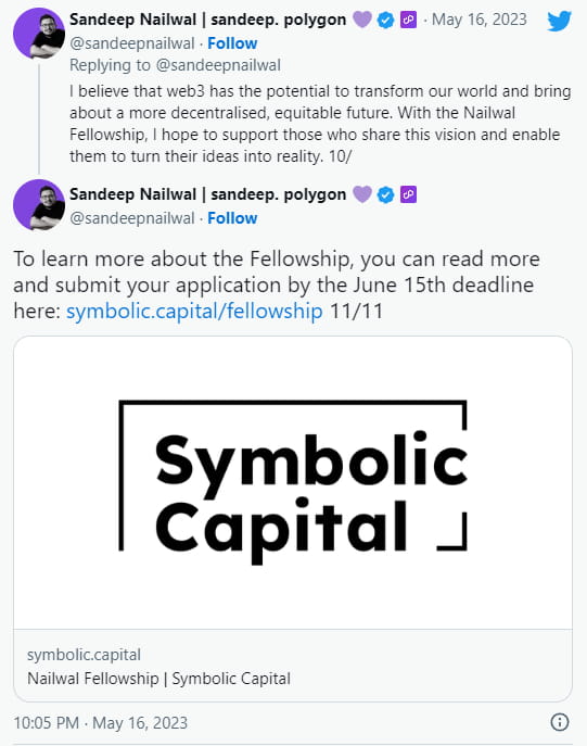 In addition to the grants, these researchers will also receive guidance from Symbolic Capital, a venture capital fund founded by Sandeep Nailwal, and exposure to top founders and investors to aid them in committing to building full-time in Web3 for 6 months.