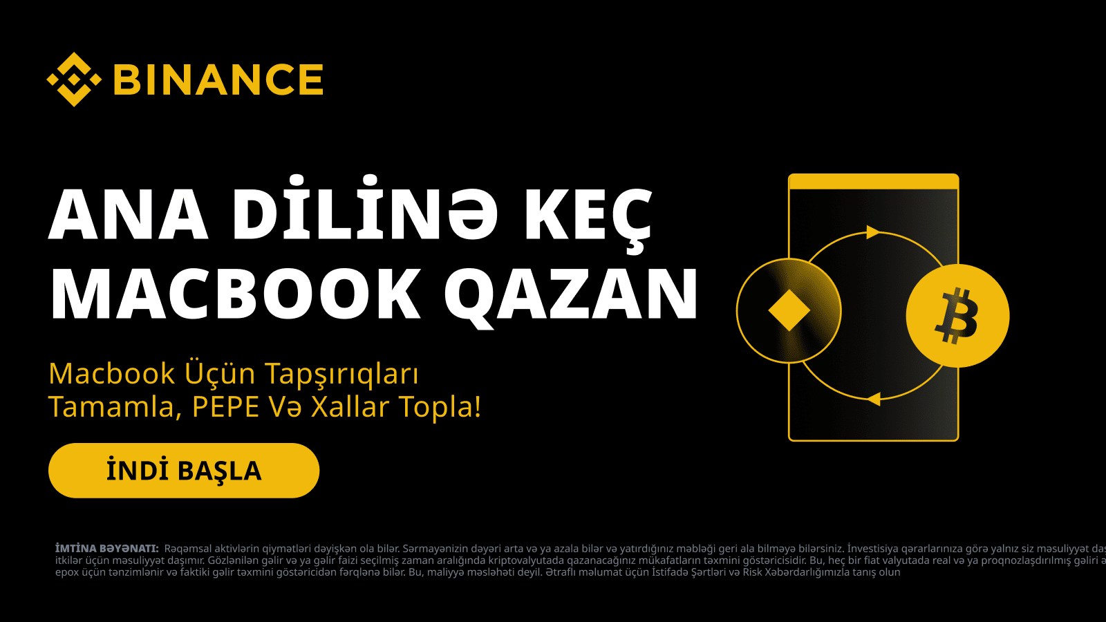 “Ana dilinə keç!” kampaniyasında iştirak edənlər əsas mükafat Apple MacBook Air dəyərində USDT, ümumi 1 Milyardlıq PEPE token və xallar qazana biləcəklər!