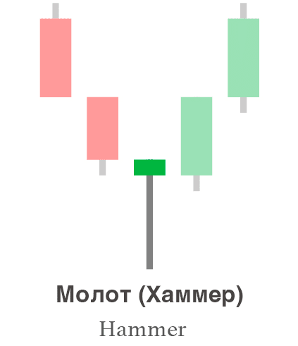 Kladivo je vzor býčího zvratu, který se objevuje ve spodní části sestupného trendu. Označuje možnou změnu směru ceny ze sestupného na vzestupný.