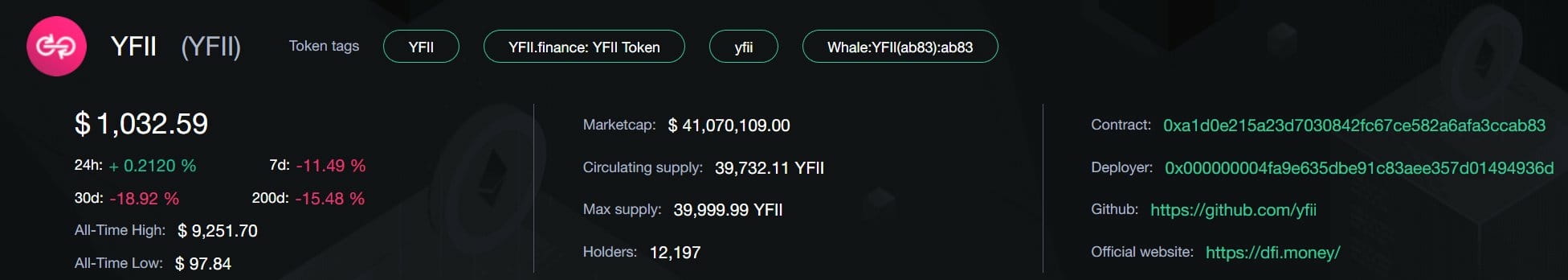 Za prvé, proč #YFII? Podívejme se zde na řídicí panel tokenů, některé statistiky:
