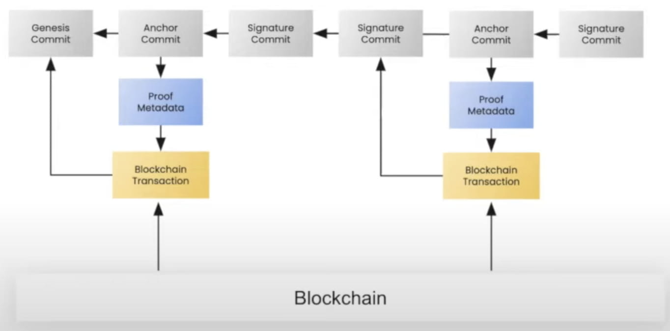 Na Ceramic je každá informace reprezentována jako pouze připojený protokol odevzdání, nazývaný „Stream“, který je zobrazen jako kombinace šedých čtverců na obrázku níže. Stream je konceptem podobný stromům Git: počáteční stav (Genesis Commit) a každá následná změna (Commit) jsou všechny uloženy v IPLD (InterPlanetary Linked Data, vrstva IPFS vyhrazená pro datové struktury) a tyto záznamy jsou kombinovány do podoby Proud. Vzhledem k tomu, že streamy zaznamenávají „změny“ spíše než „snímky“ výsledného stavu, je pouze nutné zpracovat všechny události ve streamu, abyste získali nejnovější stav protokolu.