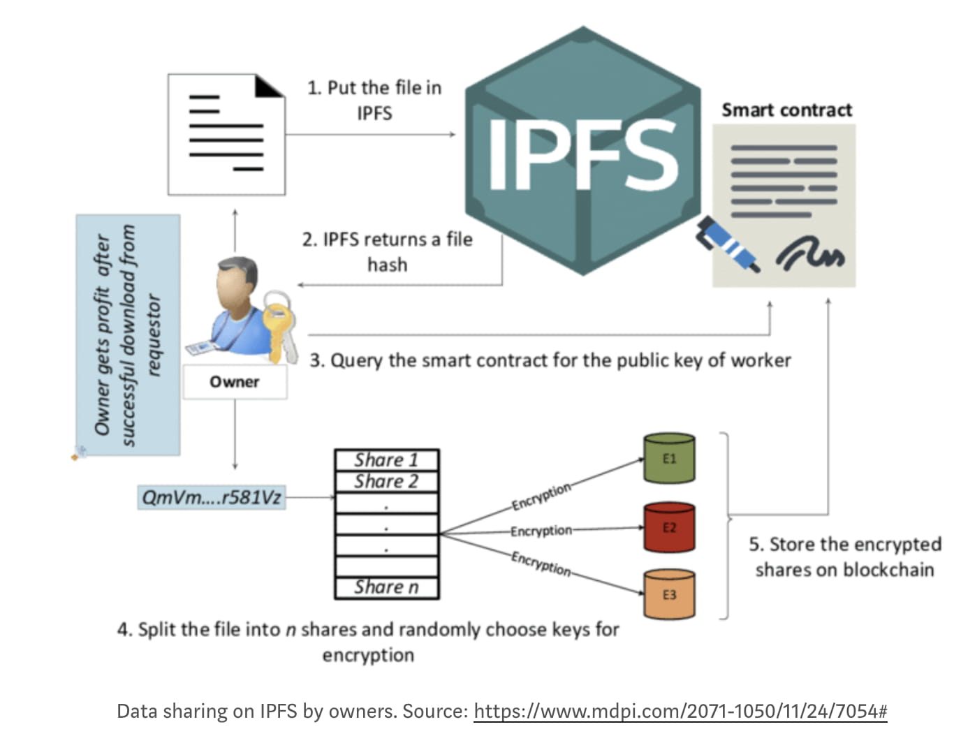 Konkrétně řečeno, IPFS přiřadí každému souboru jedinečnou hodnotu hash, podobnou otisku souboru. Každý kořenový soubor ukazuje na více souborů uzlů, a jakmile se změní obsah souboru uzlů, změní se odpovídajícím způsobem i hodnota hash, což způsobí, že se změní i hash kořenového souboru.