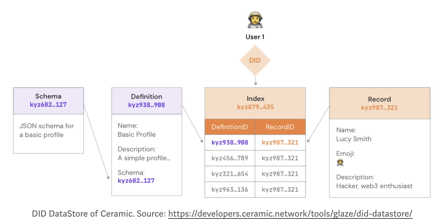 Ceramic také nabízí flexibilní a robustní řešení identity s názvem IDX, první plně funkční řešení decentralizované identity (DID).