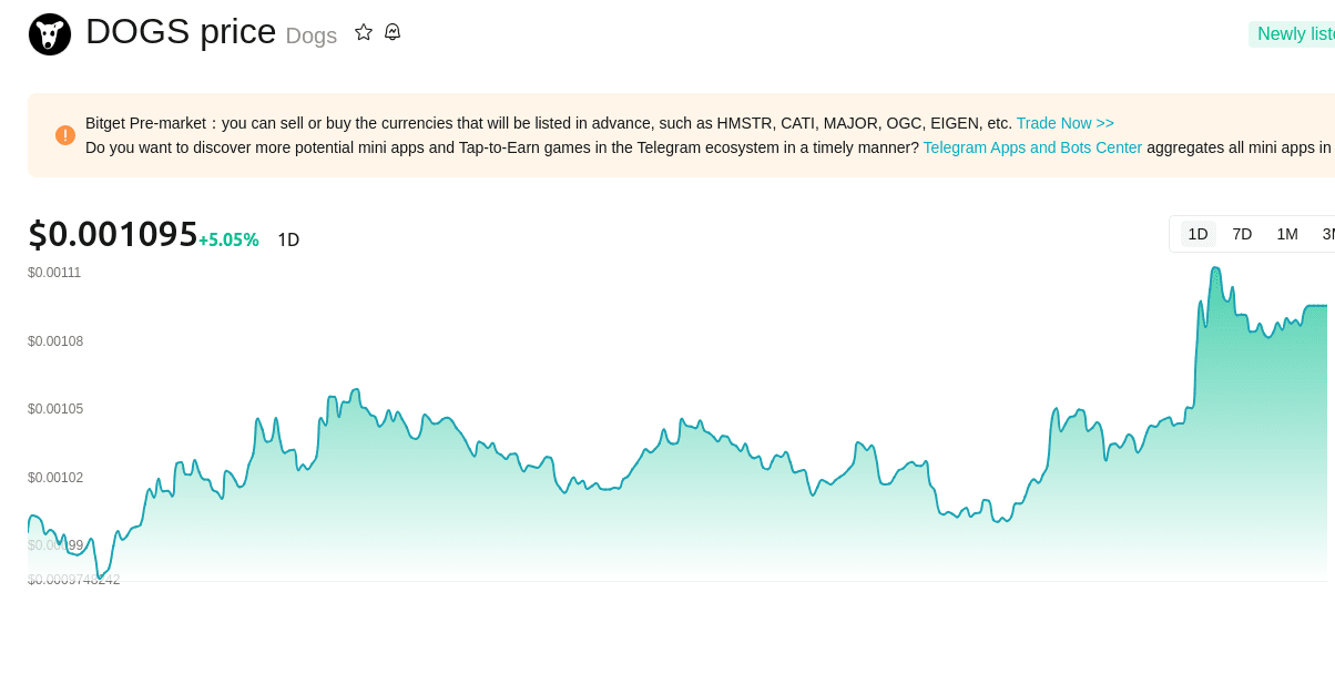 K dnešnímu dni, 9. září, se DOGS obchoduje za 0,001093 USD s tržní kapitalizací 564,89 milionu USD. Mince zaznamenala za posledních 24 hodin výrazný nárůst ceny o 8,75 %.