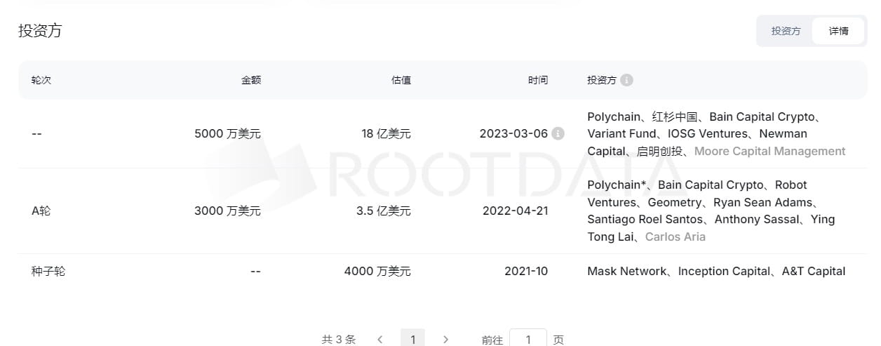 V březnu letošního roku investovaly společnosti Polychain, Sequoia China, Bain Capital Crypto, Variant Fund, IOSG Ventures, Newman Capital, Qiming Venture Partners a Moore Capital Management společně 50 milionů dolarů.
