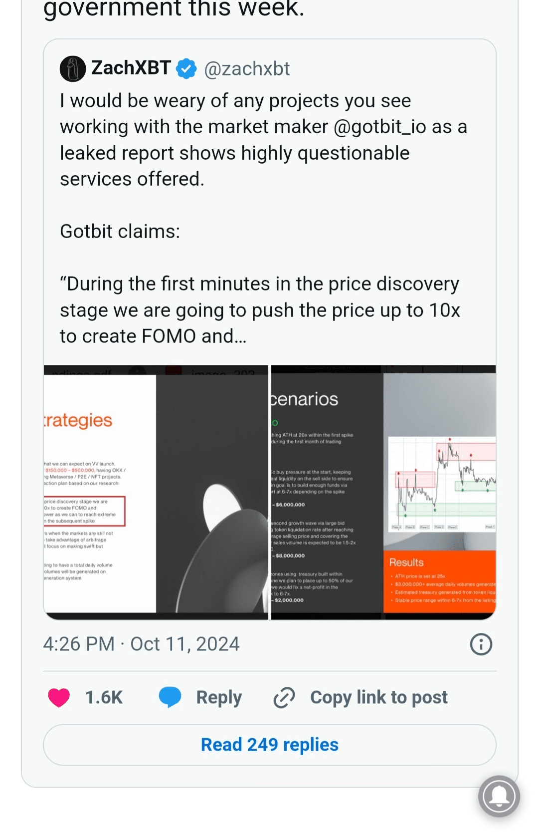 Jiné memecoinové projekty v pátek ostře uvedly svou neochotu dále spolupracovat s Gotbitem, přestože samozvaný hedgeový fond a tvůrce trhu memecoinů stále vykonával významnou kontrolu nad jejich tokeny.