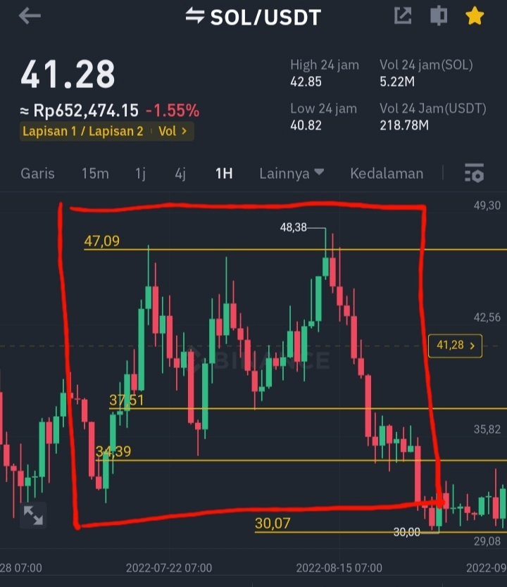 Následuje obrázek grafu $SOL od července do srpna v roce 2022.