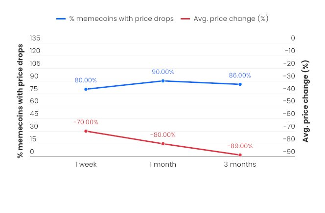 80 % těchto meme coinů kleslo o více než 70 % za týden.
