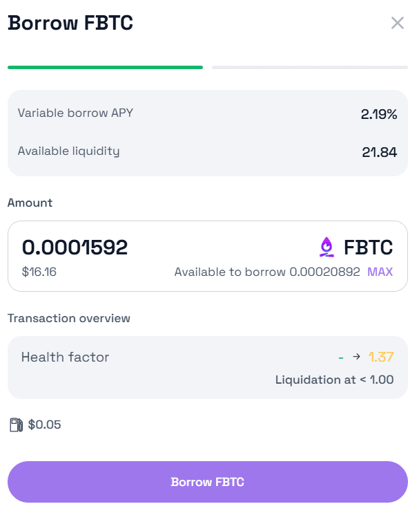 2. Půjčte si libovolnou částku cmETH nebo FBTC.