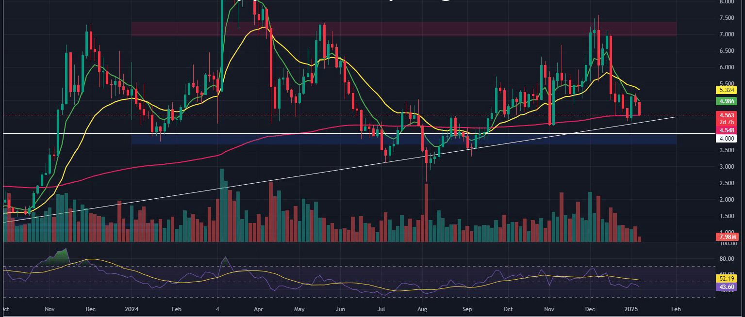 🔹 Vstupní zóna: 4,30 – 4,70 USD