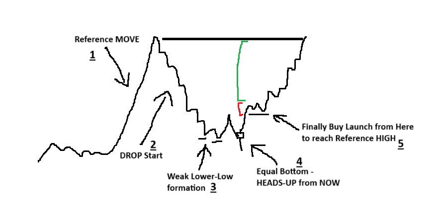 Třetí krok je sledovat trh, když se zdá, že končí fázi slevy a vytváří mírně nižší minimum. Ale tady je to: tento krok funguje pouze tehdy, pokud existuje platný referenční pohyb. Pokud neexistuje referenční pohyb, nesnažte se rozpoznat tento vzor, protože byste mohli skončit s falešnými signály a být zklamáni. Místo toho berte věci krok za krokem, v logickém pořadí, a ujistěte se, že máte platný referenční pohyb, než přejdete dál.