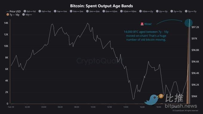 9. února sdílel známý analytik Maartunn soubor on-chain dat: 14 000 Bitcoinů s historií 7 až 10 let se na blockchainu pohybovalo.