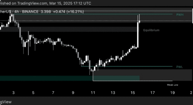 Cena $TON právě dosáhla předchozího týdenního maxima (PWH), klíčové zóny likvidity, která často určuje směr trhu. V této fázi jsou v hry dva scénáře: rozhodující výbuch signalizující pokračování nebo odmítnutí vedoucí k retracementu. Obchodníci by měli pečlivě sledovat cenovou akci, aby zjistili, zda kupující udržují momentum nebo prodávající zasahují, aby vyvolali obrat.