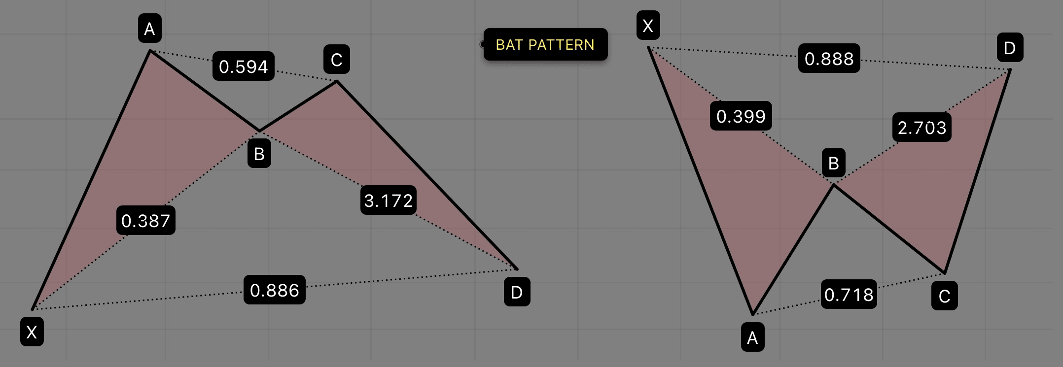 - C Bod: 0.382–0.886 retracement AB.