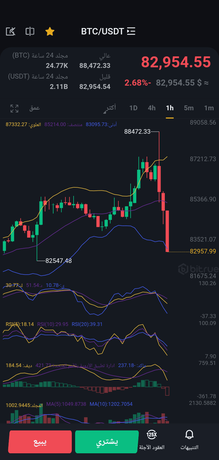 - **Denní obchodní rozsah:** mezi **88,472.33$** (vrchol) a **82,954.55$** (dno).