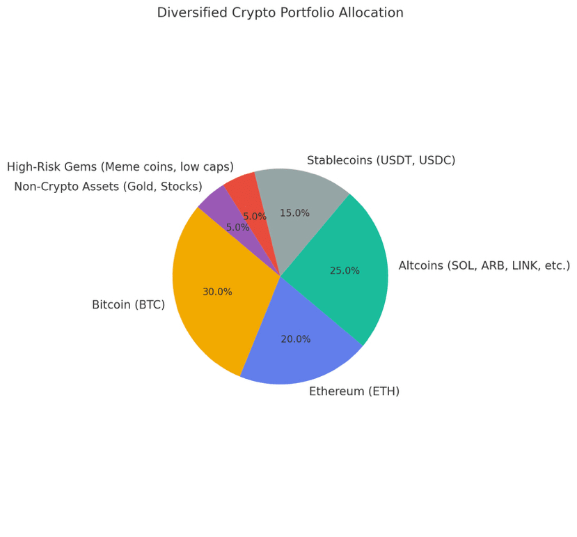 Na volatilních trzích, jako je krypto, mít všechny prostředky v jednom aktivu (např. BTC nebo meme coin) vás vystavuje obrovským poklesům. Diverzifikace pomáhá zmírnit dopad, když se věci zhorší – a maximalizuje příležitosti v různých sektorech, když se věci zlepší.