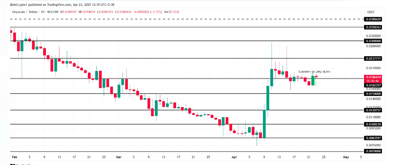 Současná nálada na trhu pro Onyxcoin je převážně negativní, jak naznačuje jeho funding rate. Negativní funding rate naznačuje, že více obchodníků sází proti minci tím, že uzavírají krátké kontrakty na futures trhu.