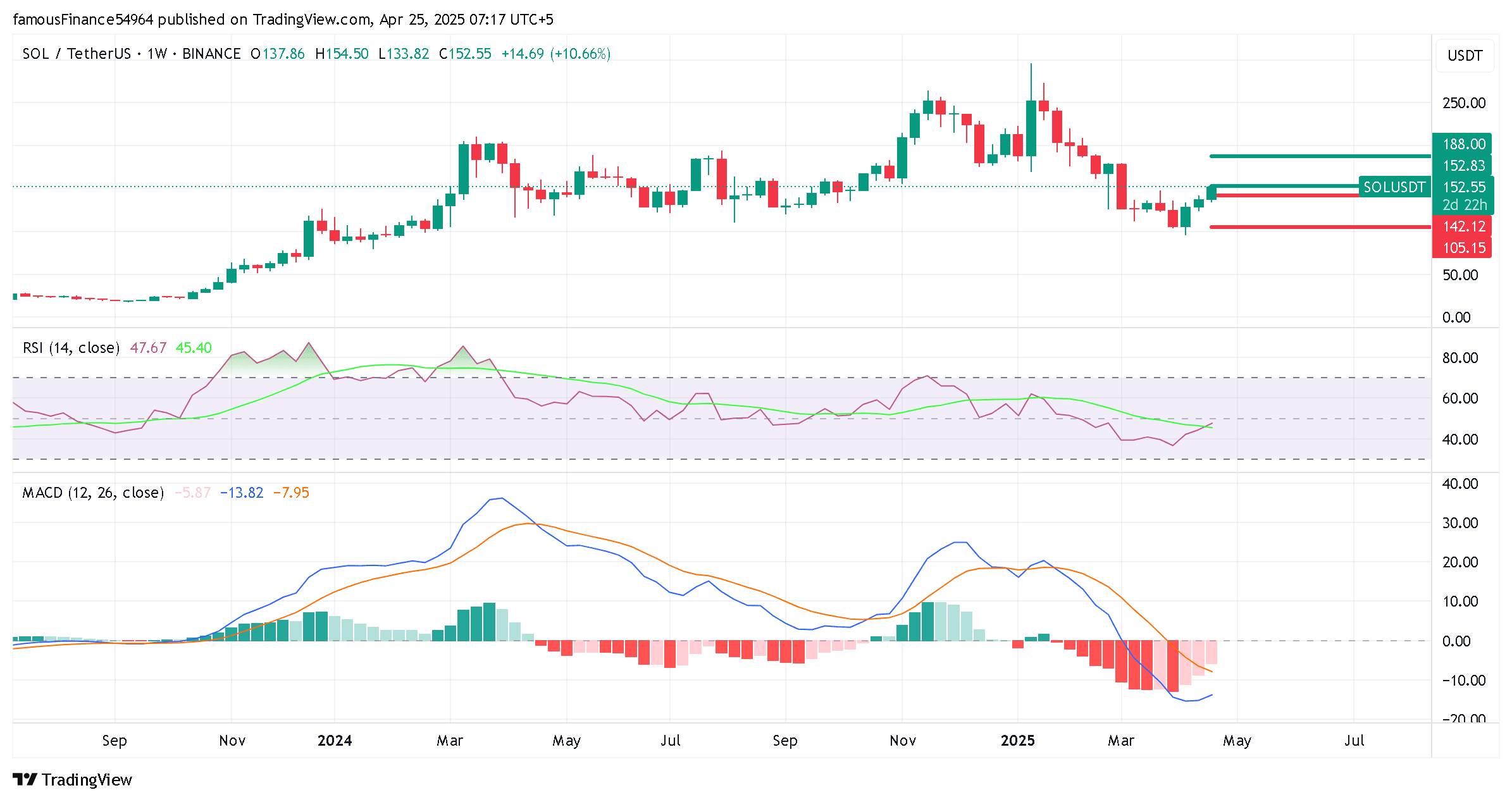 Příležitost k shortování: Krátká pozice by mohla být zvážena pouze v případě, že SOL narazí na odpor na úrovni $154.50 a RSI klesne pod 45, což naznačuje oslabení býčího momenta.