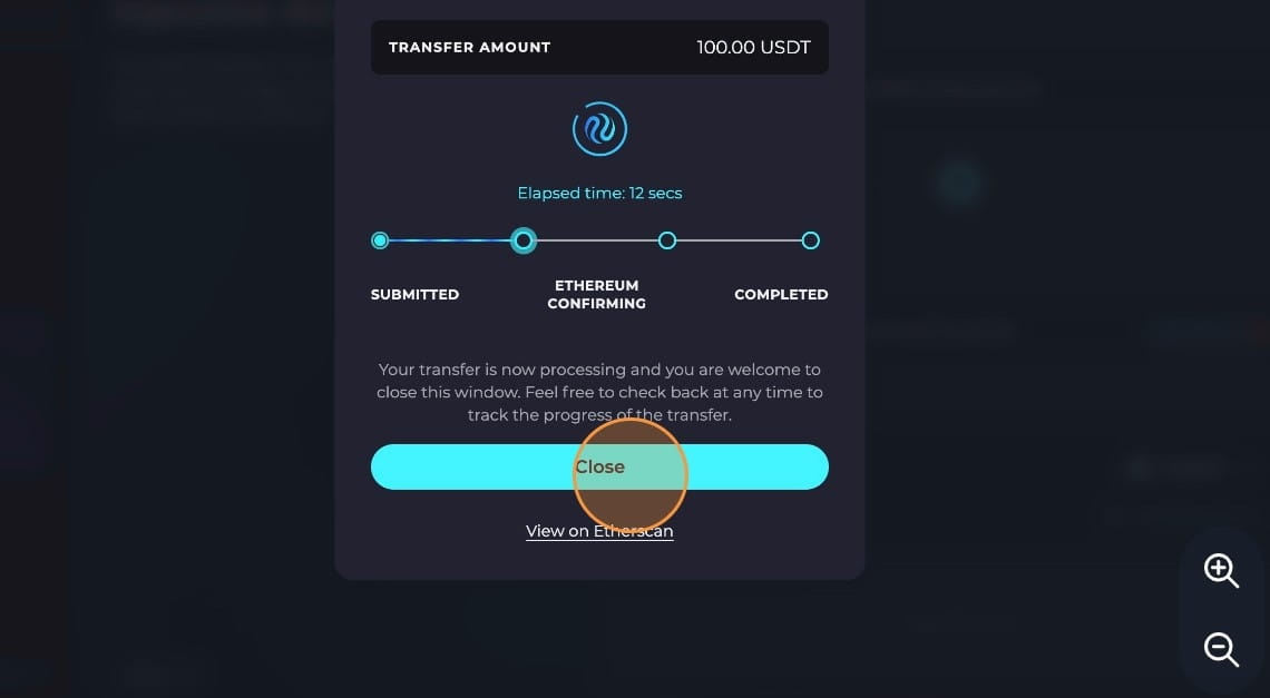 Jako token k přemostění vyberte „USDT“.