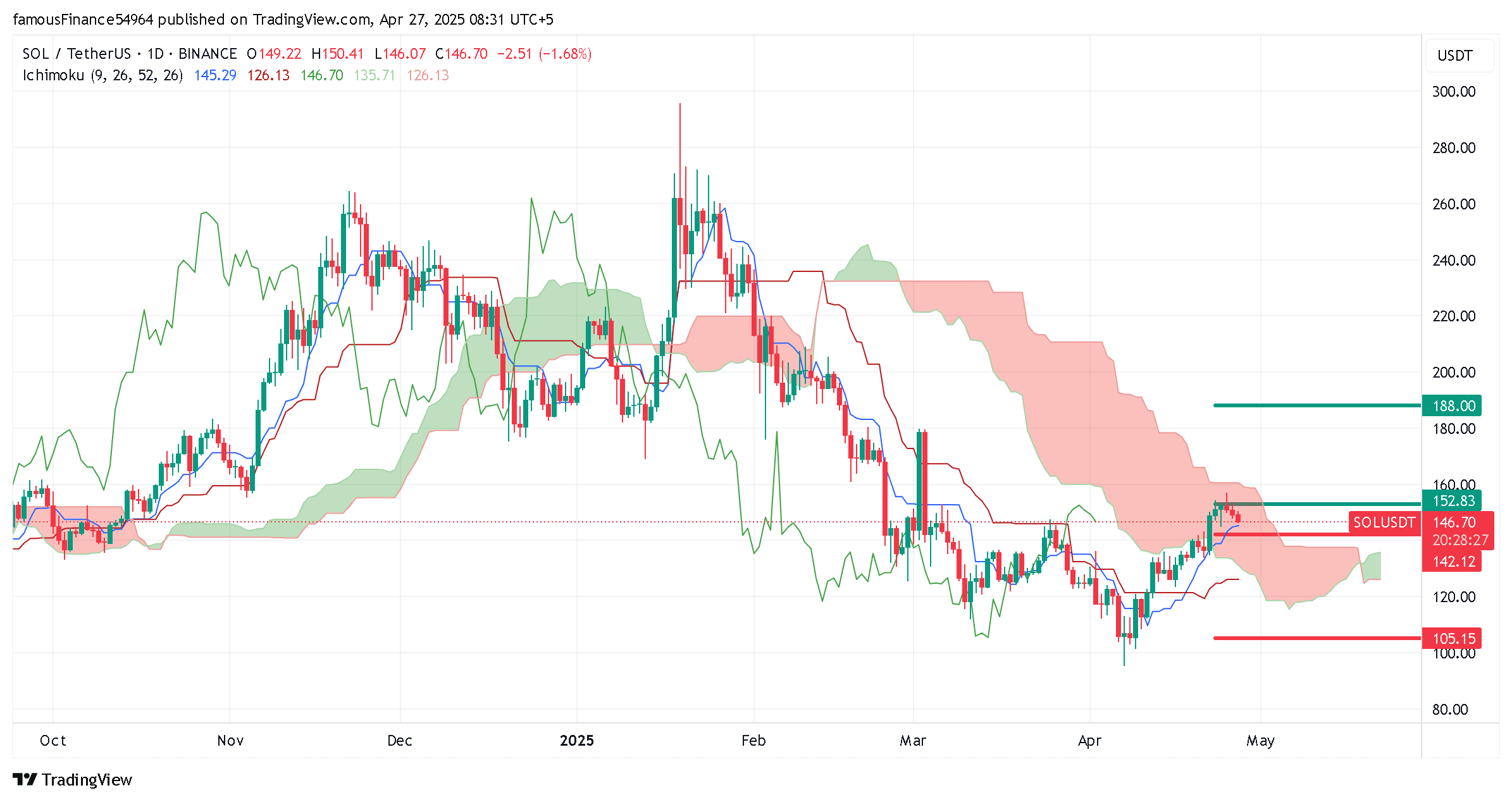 Otázka zůstává: bude Solana pokračovat ve svém vzestupném trendu, nebo je na obzoru pokles? Ichimoku Cloud může brzy poskytnout jasnější indikaci.