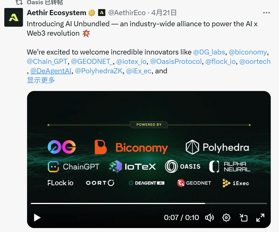 21. dubna, @AethirEco slavnostně uvedl AI Unbundled - průmyslovou alianci, která podporuje revoluci AI x Web3💥