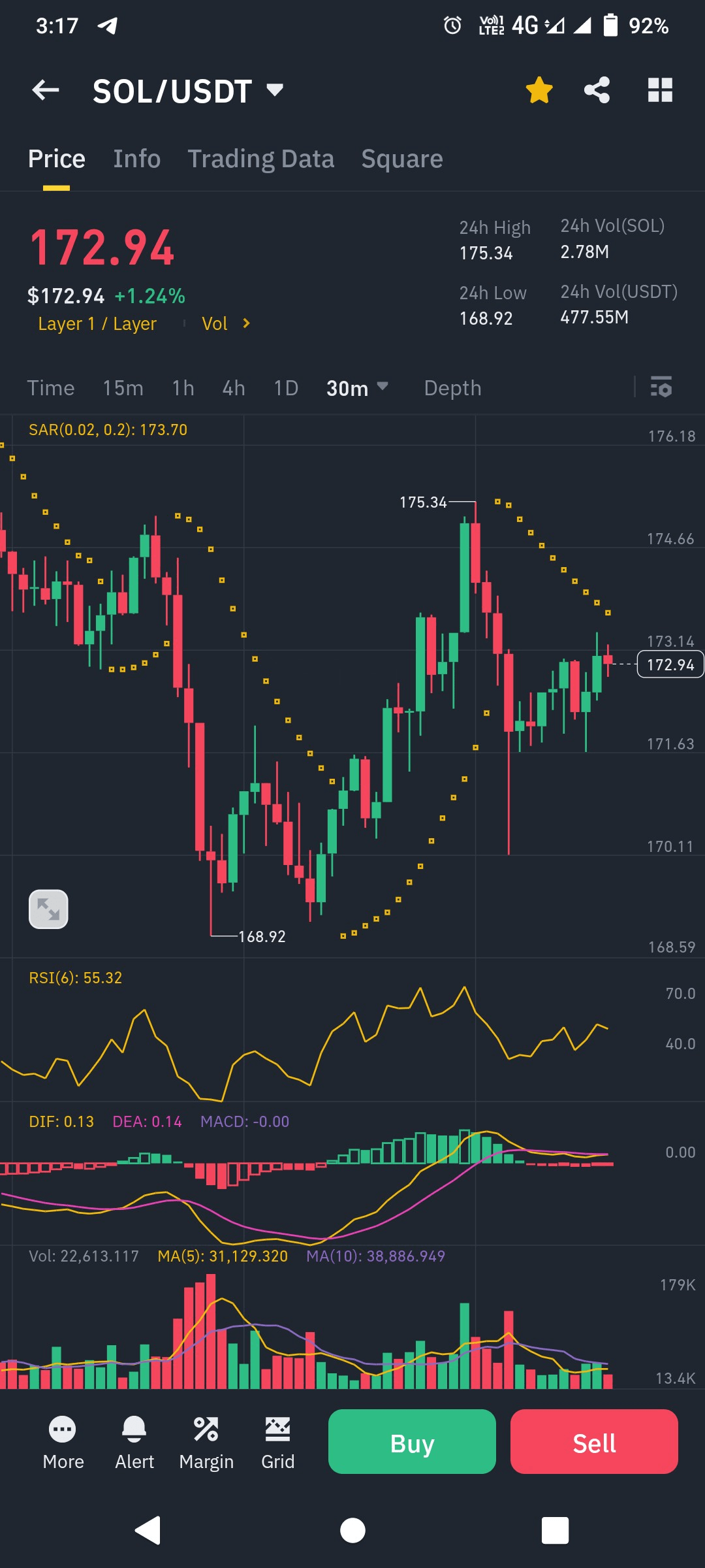 Sledujte pokračující cenovou akci pod $173.70 (SAR úroveň) pro potenciální krátké příležitosti.