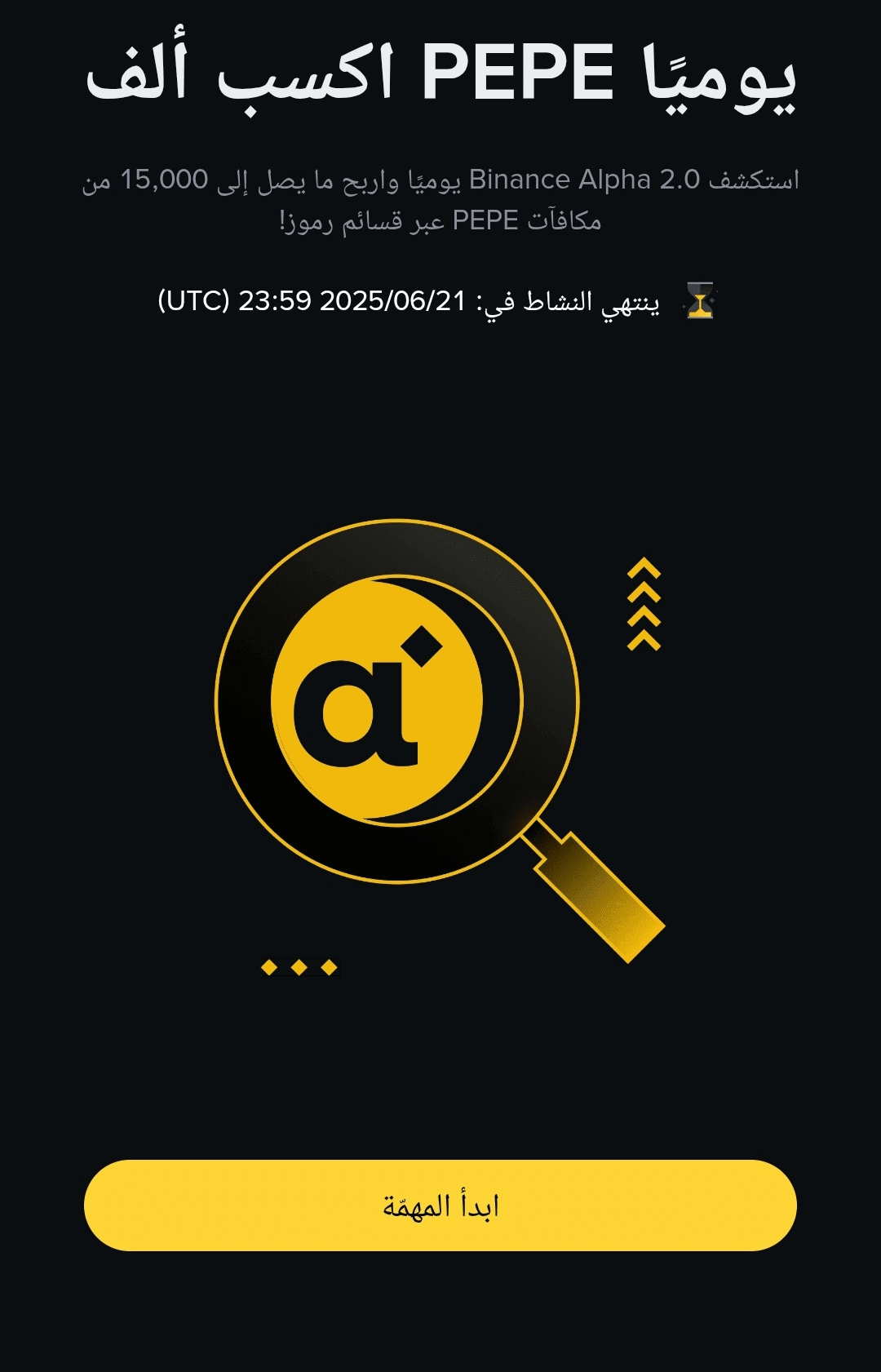 Způsobilí uživatelé z oblasti Středního východu a Severní Afriky, kteří se každý den přihlašují na Binance Alpha během propagační doby, obdrží voucher v hodnotě 1 000 PEPE denně - celkem až 15 000 PEPE během 15 dní na základě pořadí přihlášení.