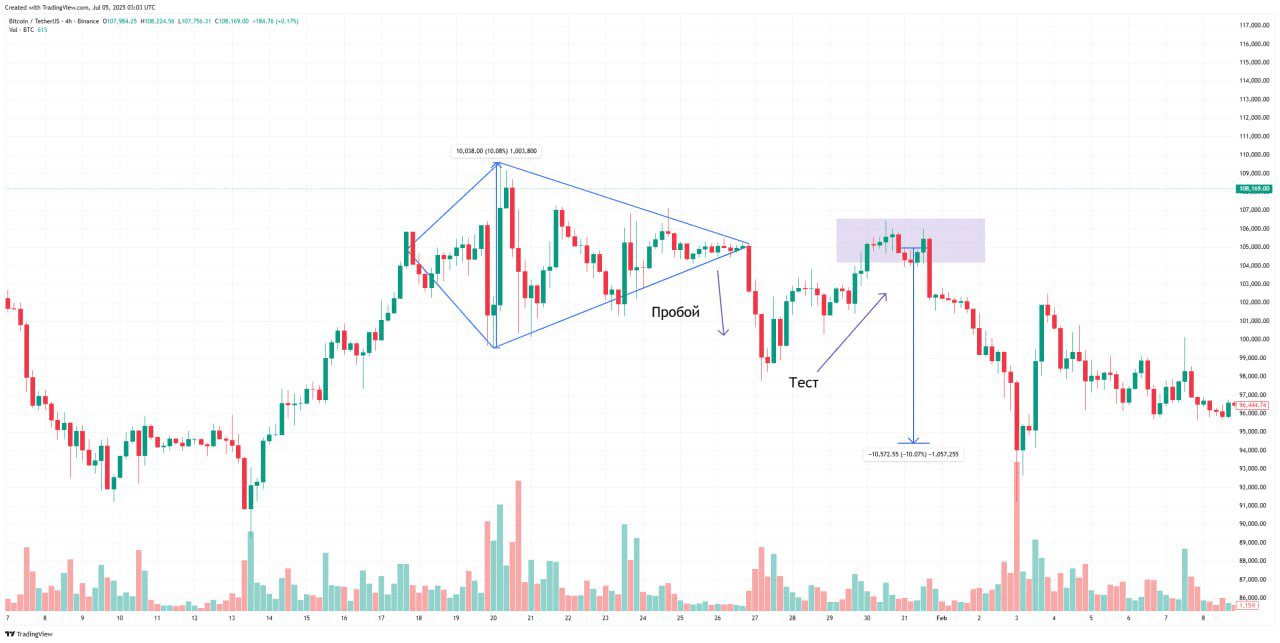 ▪️ Objem: objem je obvykle vysoký v raných fázích formování (rozšiřování) a klesá, jak se vzor zúžuje, poté se opět zvyšuje při průrazu.