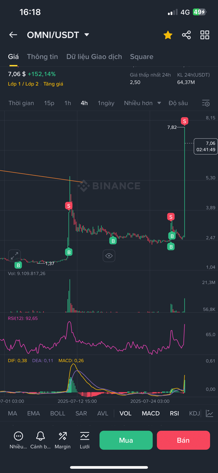 🔥 Dnes $OMNI dosáhlo vrcholu $7.06 – x3 jen po několika 4H svících.