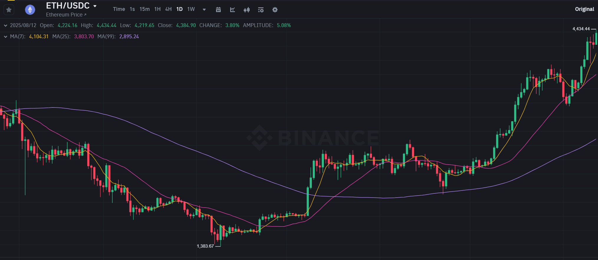Nárůst přílivu ETF – Americké spotové ETF na Ethereum zaznamenaly více než 1 miliardu USD v denních čistých přílivech 11. srpna, což je nejvíce od spuštění. Hlavní hráči jako BlackRock a Fidelity vedou poptávku. To značí silný institucionální zájem, rostoucí akceptaci na trhu a je dále podpořeno novým přístupem k 401(k) kryptoměnám.