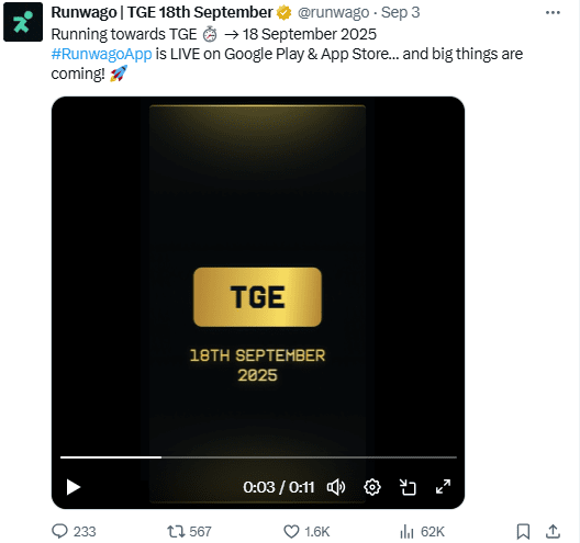 Runwago oznámilo, že jeho TGE se uskuteční 18. září 2025