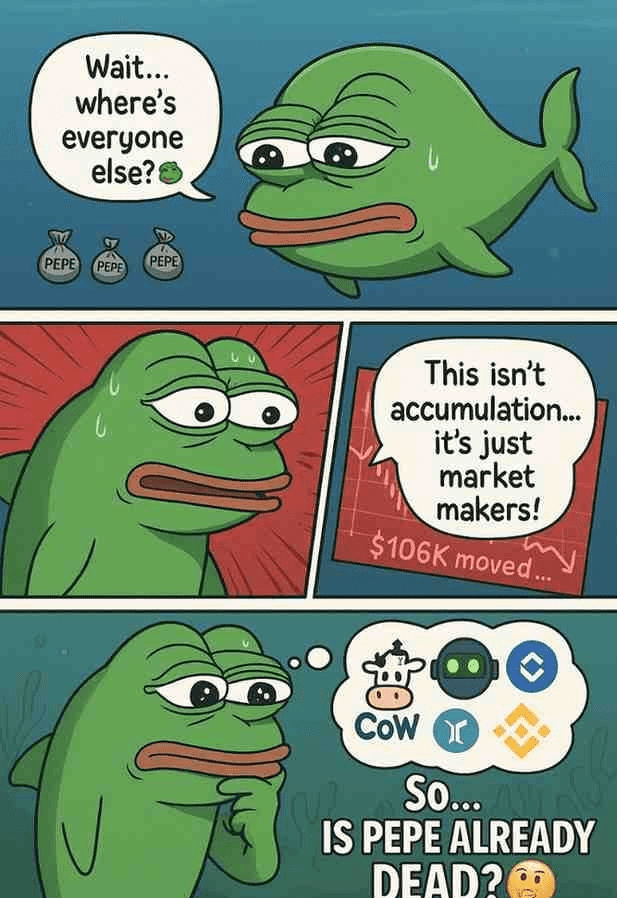 🔥 Pokud se brzy neobjeví velký hráč, $PEPE could se dívat na studenou realitu, kterou každý memecoin čelí: vyhasínající hype, žádná záchraná, pomalý úbytek. 💔