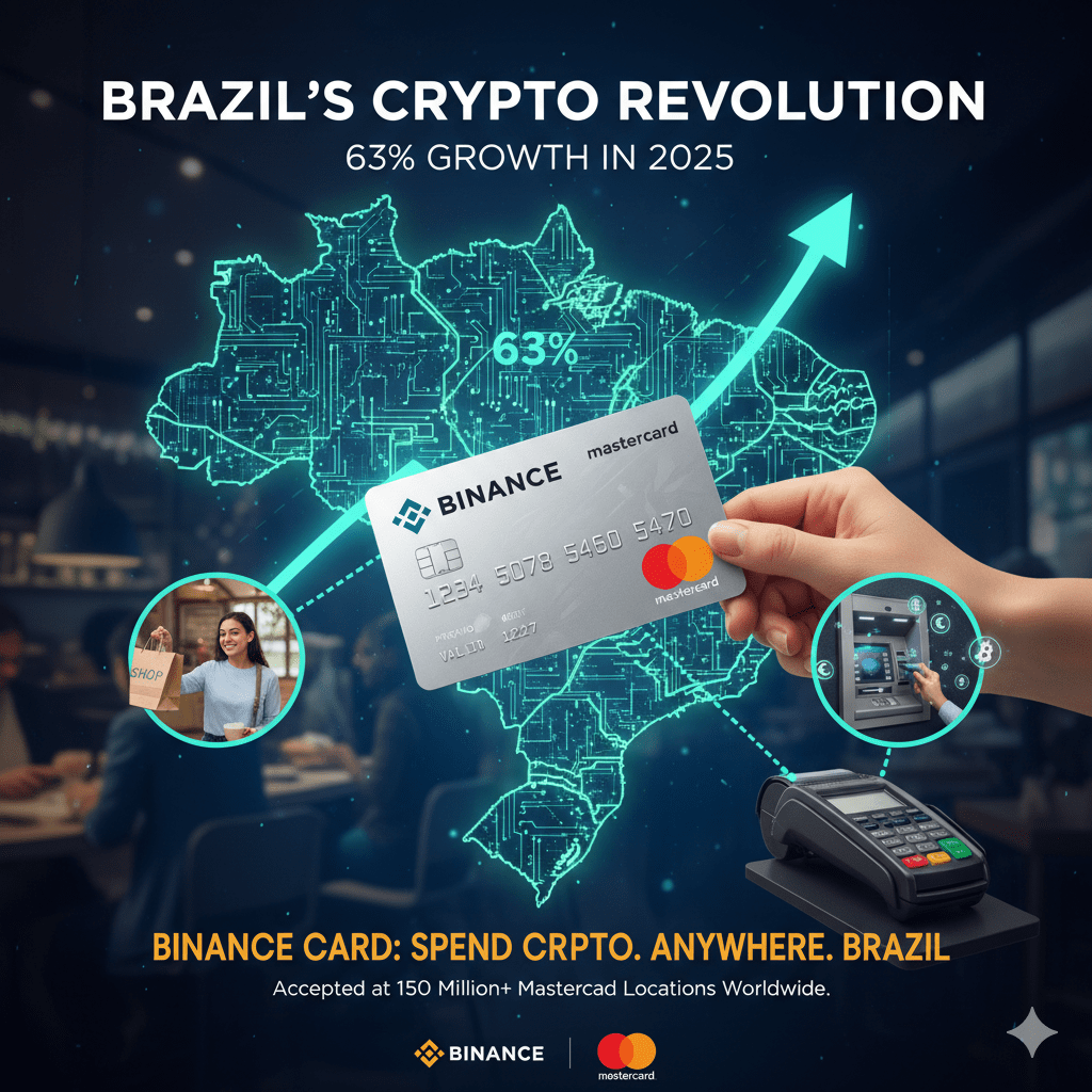V roce 2025 vzrostla adopce kryptoměn v regionu o 63 %, což z něj činí jeden z nejrychleji rostoucích trhů na světě. Abychom vyhověli této poptávce, spojil se Binance s Mastercard, aby uvedli kartu Binance v Brazílii. Karta usnadňuje lidem utrácení kryptoměn v každodenním životě – ať už při nakupování online, při popíjení kávy nebo při vybírání hotovosti z bankomatu.