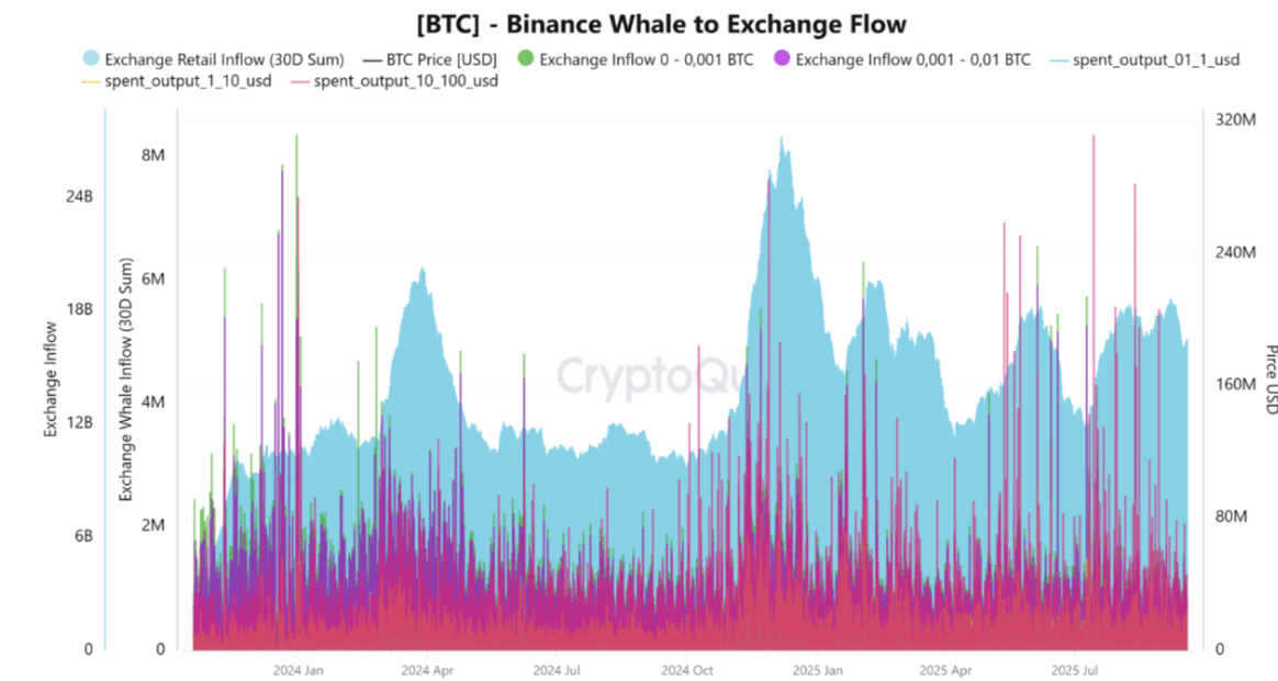 Faktory opatrnosti: Současný trh se zdá být poháněn maloobchodními investory místo velkých velryb. Akumulace malých peněženek (0 až 0.01 BTC) byla od začátku září významná. I když to podporuje pozvolný vzestup směrem k 120.000 dolarům, obchodníci by měli být opatrní, protože náhlá aktivita velryb by mohla vyvolat rychlou korekci. Dále zpráva od K33 uvádí, že financování bylo nestálé a zůstává pod neutrálními úrovněmi, což odráží skutečnost, že obchodníci jsou neochotní zvyšovat dlouhou expozici.