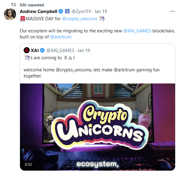 Dalším velmi důležitým bodem je, že kromě infrastruktury decentralizovaných burz (DEX) jako je Shensword byla technologie Layer0 již nasazena na hlavní síti XAI. Cílem této strategie je usnadnit migraci dalších her na platformu XAI. Je zajímavé, že prvním dokončeným projektem migrace byla "Crypto Unicorns". Tento krok nejen ukazuje technickou sílu a flexibilitu platformy XAI, ale také dále přitahuje pozornost herních vývojářů a vytváří solidní základ pro expanzi a diverzifikaci ekosystému XAI. Tento Andrew je přece velký bratr AxieInfinity.