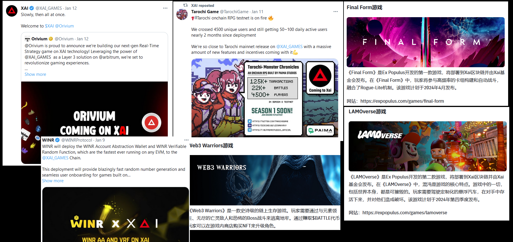 Jak bylo uvedeno dříve, projekt XAI již před vybudováním řetězce XAI vedl hluboké spolupráce s několika herními vývojáři. Proto zde jen stručně ukážu některé herní případy spolupráce s projektem XAI, bez dalšího rozepisování. Různorodost a kvalita těchto spolupracujících případů dále dokazují přitažlivost a potenciál řetězce XAI, a ukazují jeho široký vliv a uznání v herním průmyslu.