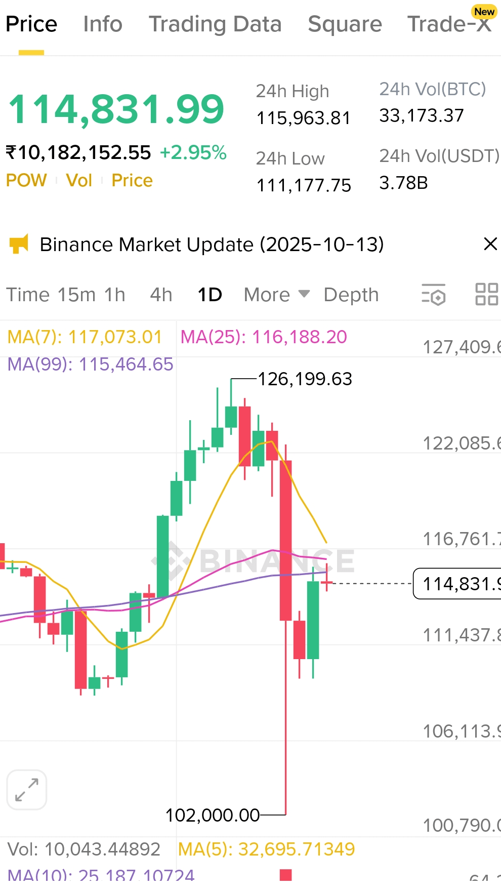 Geopolitika / Obchodní napětí Nedávné uvalení 100% cel na čínské technologie vyvolalo prudký výprodej kryptoměn (přibližně 19 miliard dolarů ztraceno). Ale uvolněný tón od politických činitelů pomohl trhům obnovit se.