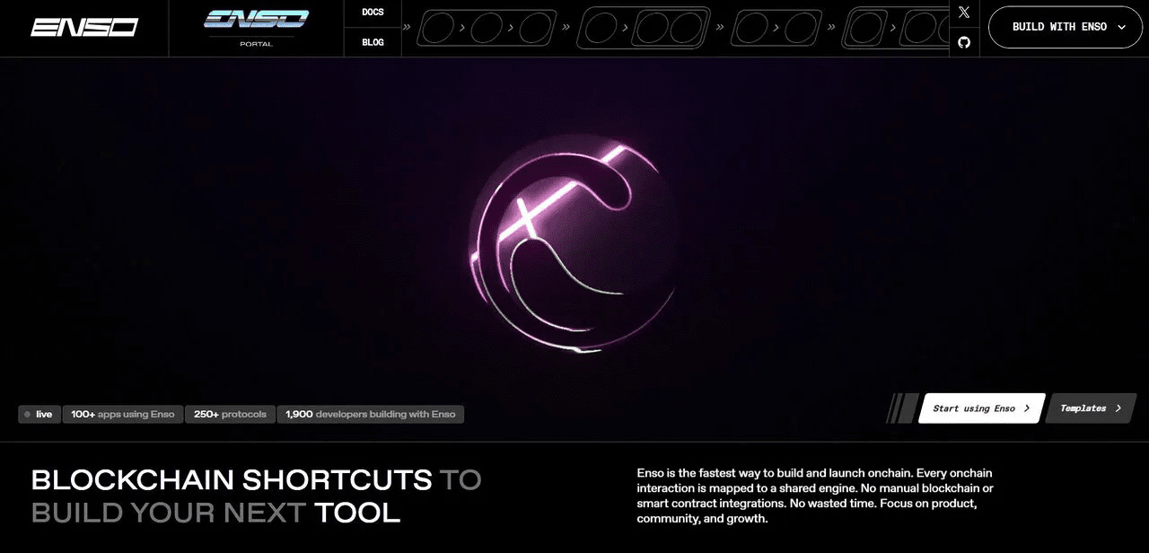 Enso je platforma blockchainové infrastruktury zaměřená na cíl „jediného spojovacího stupně“ pro tisíce různých blockchainů — kde vývojáři potřebují pouze jedno integrační místo pro čtení, zápis a interakci s jakýmkoli smart kontraktem na jakémkoli řetězci. Myslete na Enso jako na „pohodlnou komunitu Web3“, kde místo toho, aby každý projekt prováděl desítky samostatných integrací, Enso poskytuje „zkratky“, které usnadňují a urychlují vývoj 🎯.