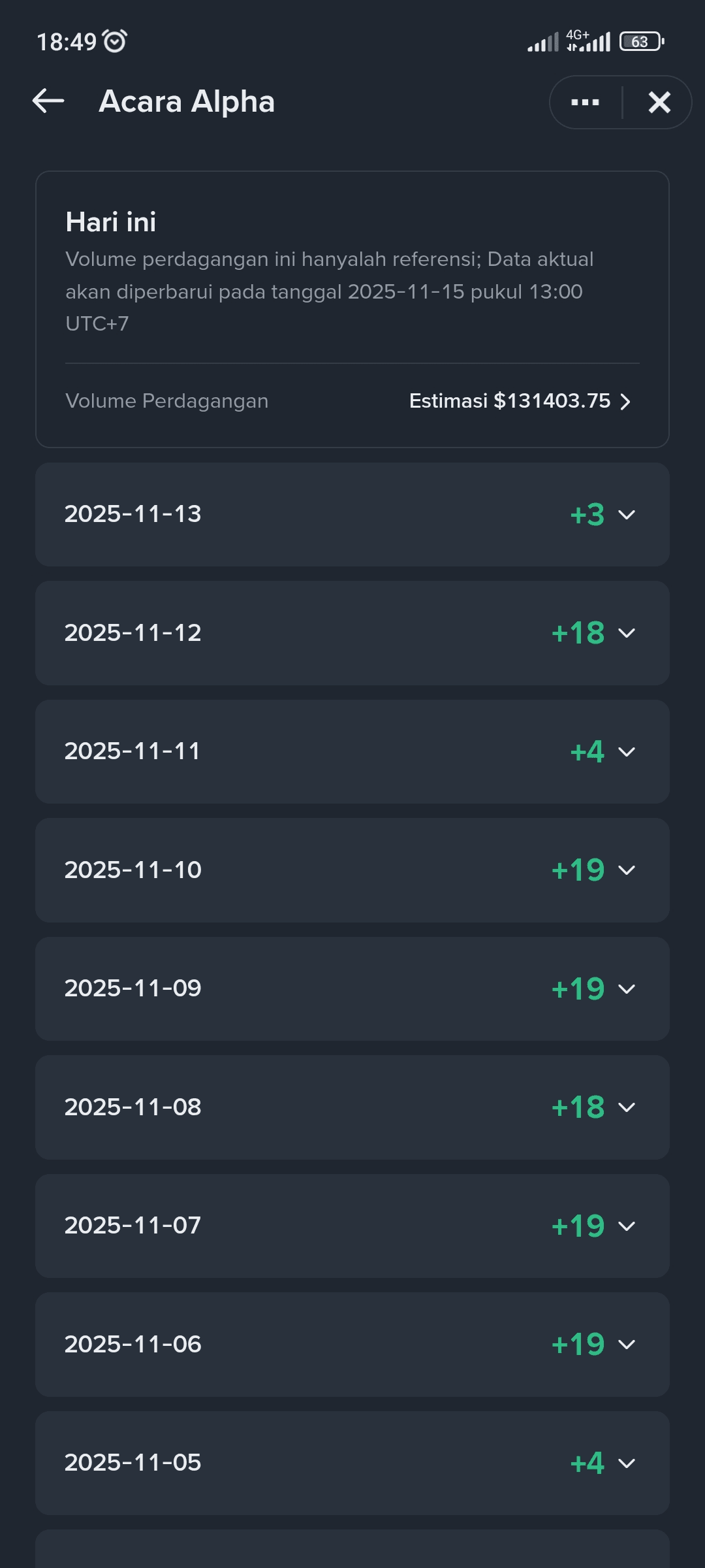 Kupte nebo držte tokeny ze seznamu Alpha (např. nové nízkokapitalizační aktivum na BNB Chain). Každá obchodní/držící aktivita přináší body: