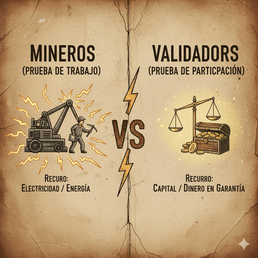 Model PoW (Minéři) používá elektřinu k zajištění bezpečnosti, zatímco model PoS (Validátoři) používá kapitál (peníze vložené do záruky). Oba jsou páteří, která udržuje slib, že informace jsou nemožné změnit a decentralizace.